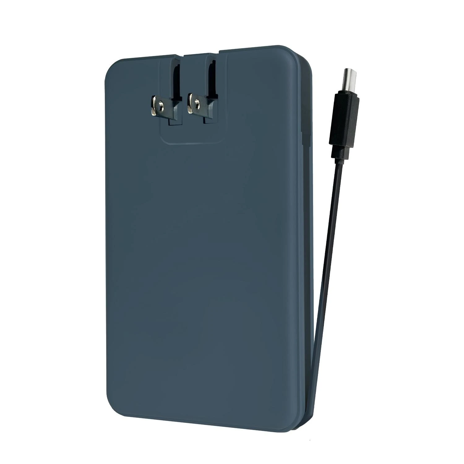 - Features integrated wall prongs for easy and efficient recharging of the power bank without extra cables.
