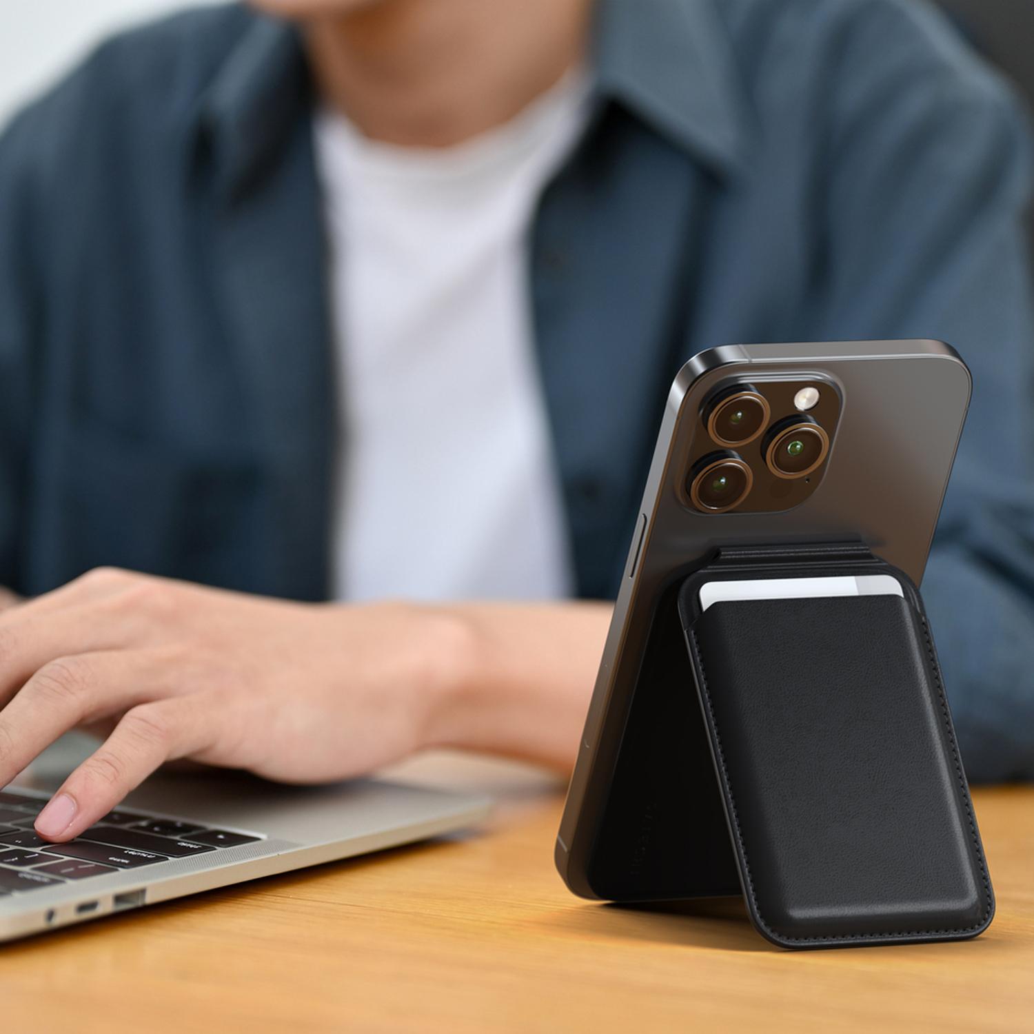 Vegan Leather Magnetic MagSafe Wallet Stand Black